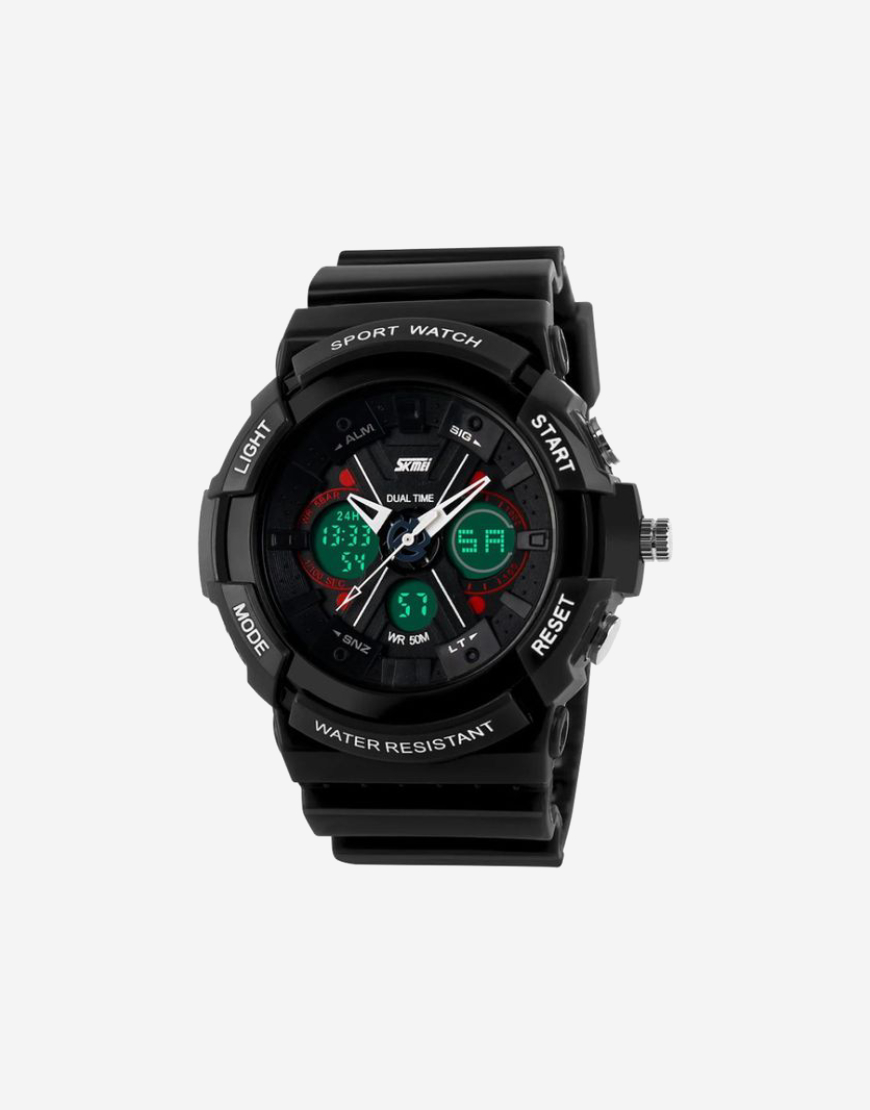 The SKMEI 0966BK is the ideal men’s watch that combines a modern design with multifunctional features. With both digital and analog displays, it’s perfect for daily wear or sporting activities.